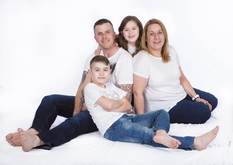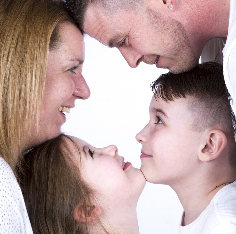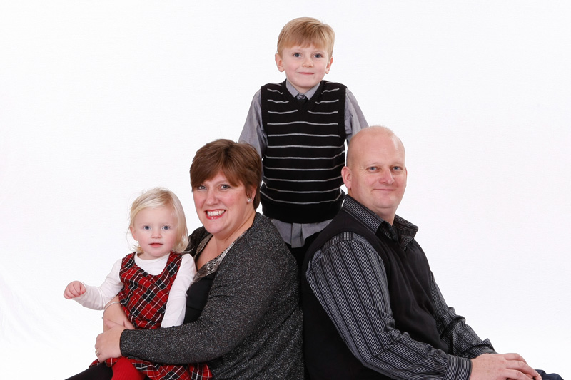 Family Portraits can be taken in a studio environment, where we can use several different coloured large backgrounds, this is ideal for larger families and fun shots.